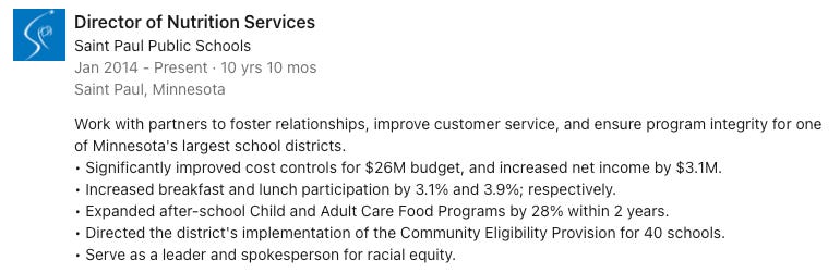 Ms. Koppen knows what she is doing when she speaks about how the rule changes allowed better service to families; she was named the Midwest Regional Director of the Year in 2021. Her LinkedIn shows how she increased SPPS’s net food service income by $3.1 million and expanded access across the board.